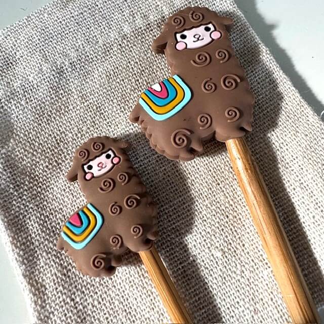 De charmerende maskestoppere fungerer som et fleksibelt silikoneværn, der passer til pinde fra 3‑9 mm – perfekt til at sikre maskerne, både når du strikker og transporterer. De beskytter dine pinde og dit strikkeprojek. Et lille, men uundværligt tilbehør til enhver strikker.