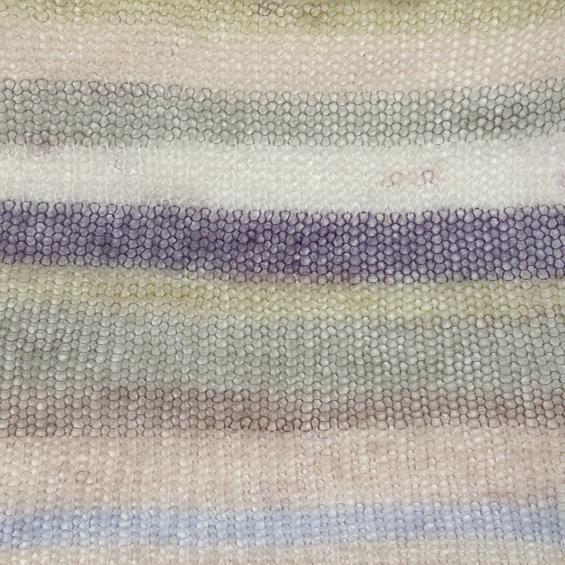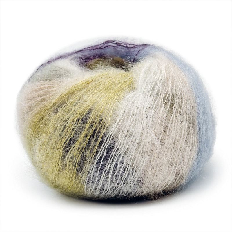Kid Seta Print er en iøjnefaldende version af Mondials klassiske luksusgarn – Kid Seta. Garnet er kendt for sin ultrafine og bløde struktur med et let fluffy udtryk. Denne trykte variant kombinerer smukt både klare og afdæmpede nuancer i flerfarvede striber, der giver dine strikke- og hækleprojekter et unikt og levende udtryk.