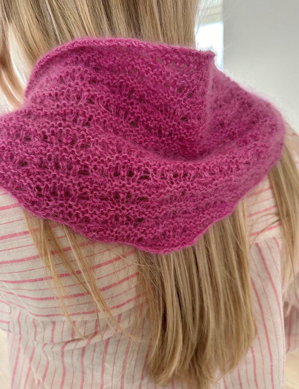 Peacock Scarf har et lille påfuglehulmønster, der får siderne på det trekantede tørklæde til at bølge let. Da man begynder i spidsen, kan Peacock Scarf strikkes i præcis den størrelse, du har brug for – eller så langt garnet rækker.