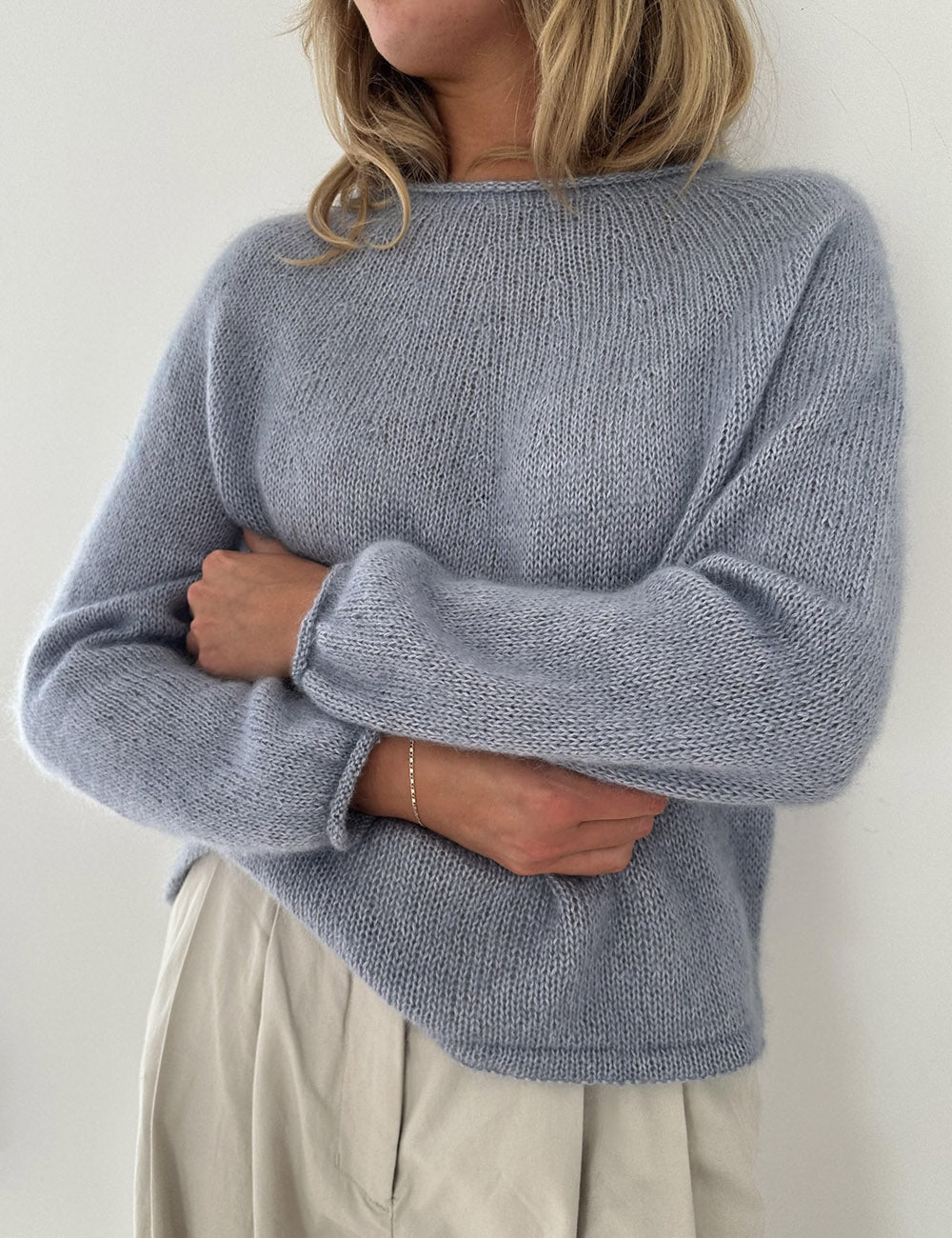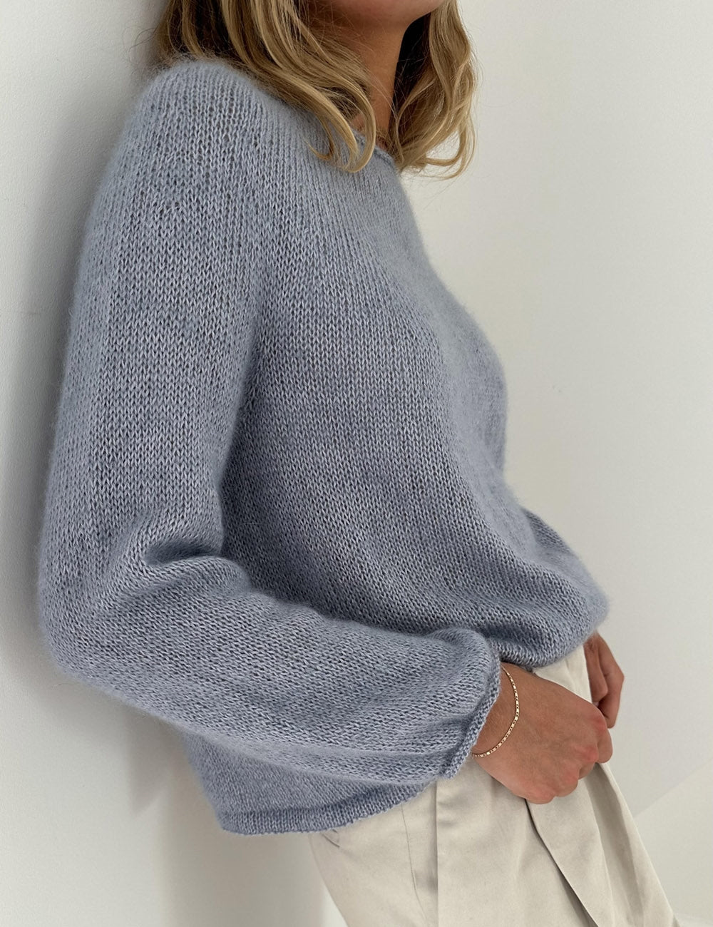 Plain Yoke Blouse er glatstrikket og helt enkel – også at strikke. Den dobbelte kant nederst giver en smuk afslutning og et fint fald. Ærmer og halskant har en glatstrikket rullekant. Opskriften indeholder både Detailed Edition og den endnu nemmere Debutant Edition uden vendepinde i halsudskæringen.