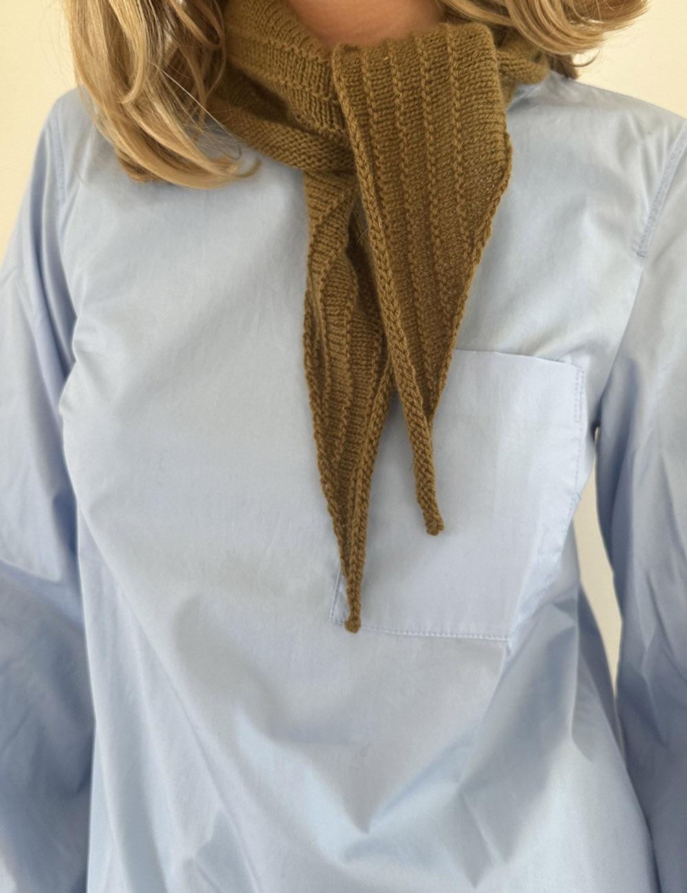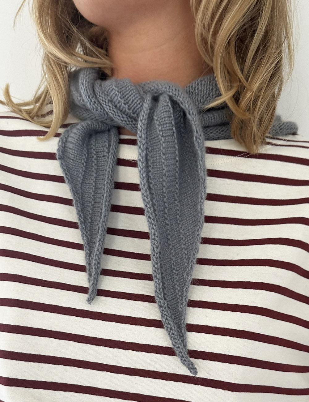 Scala Scarf er et letstrikket tørklæde, der kan strikkes i præcis den størrelse, du har brug for – eller så langt garnet rækker. Til tørklæderne i cashmere har jeg brugt 1 nøgle á 25 gram til det lille tørklæde og 2 nøgler til det store tørklæde.