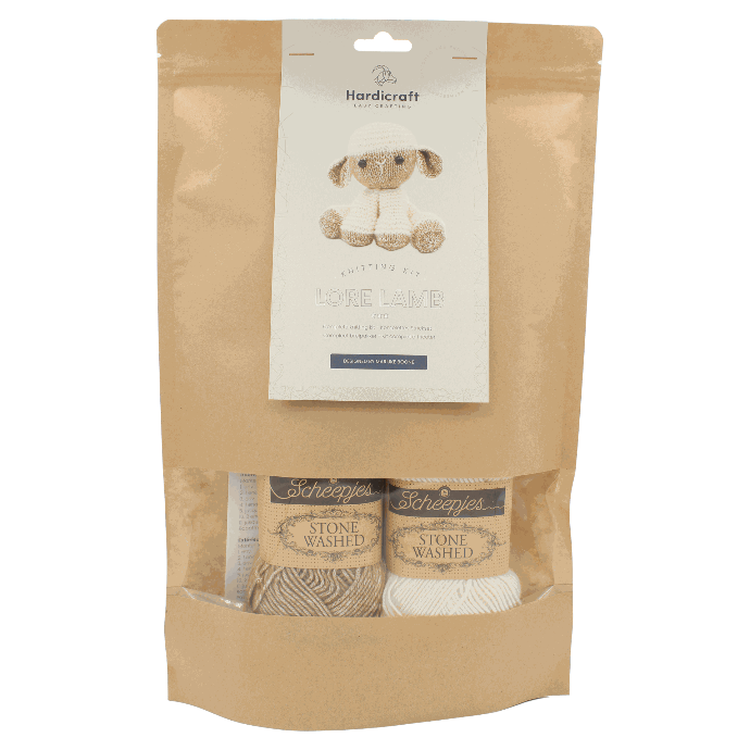 Dette komplette strikkekit med bondegårdsdyr indeholder alt, hvad du skal bruge for at strikke din egen bløde og charmerende lammebamse – perfekt som gave eller krammedyr til børn.
