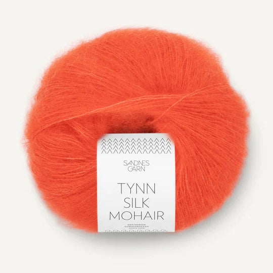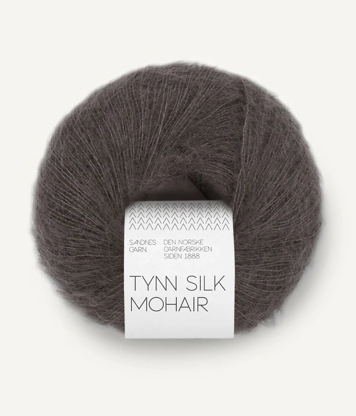 Tynn Silk Mohair fra Sandnes Garn består af 57% mohair, 15% uld og 28% silke, og er et blødt og luftigt mohairgarn.
